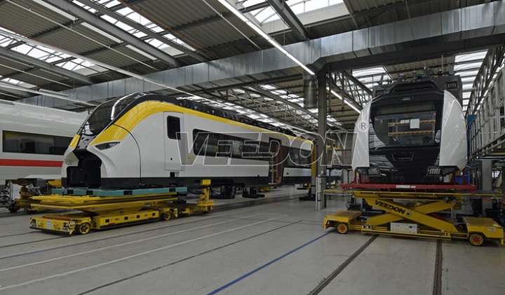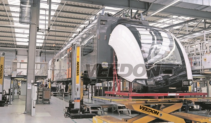 威登剪叉式车底拆装升降平台专业用于轨道车辆制造装配检修时车底设备和部件拆卸安装的专用设备。