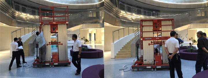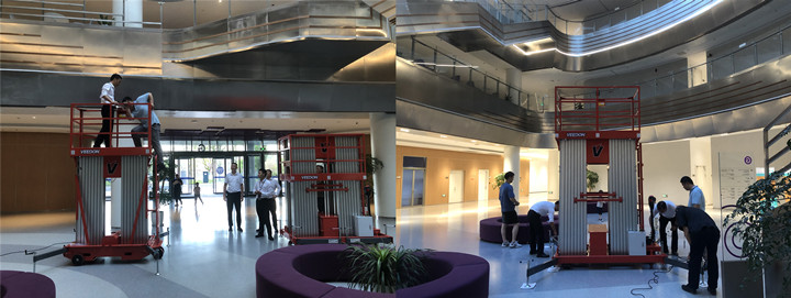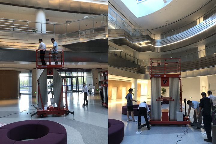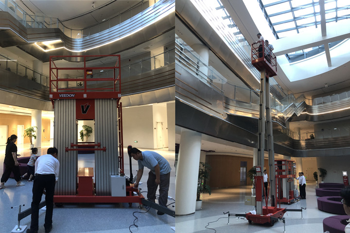 Veedon威登桅杆式高空作业升降平台,多桅杆式升降机用于西交利物浦大学教学楼,办公楼,体育馆等场所的日常检修维护等工作