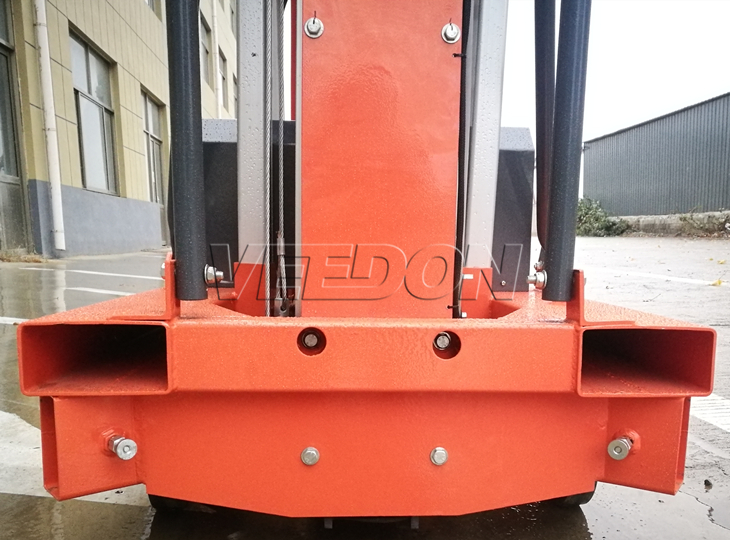 ● 立柱宽度决定平台升起后的晃动程度,睿思采用200mm的高强度铝合金超宽立柱,可保证操作台晃动更小。