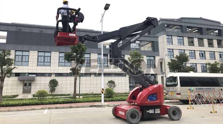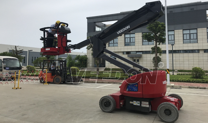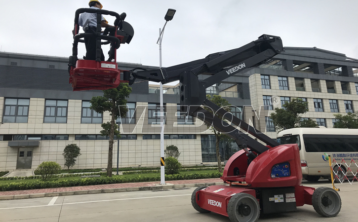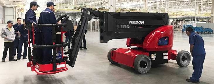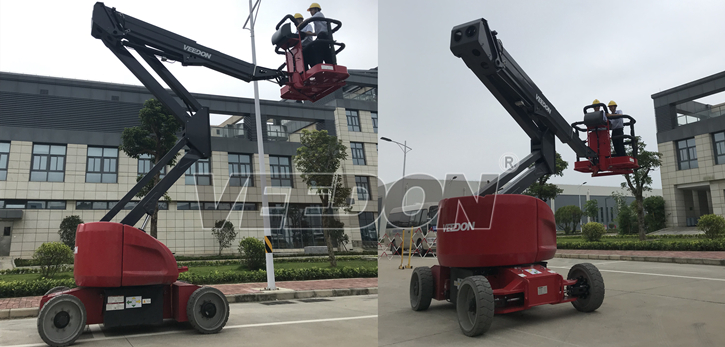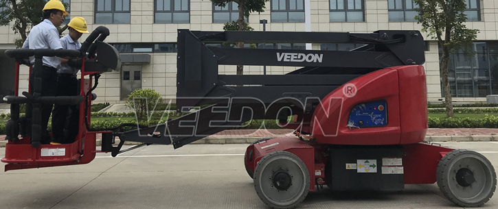 Veedon电动自行式曲臂型高空作业平台为用户提供了多角度多方位的作业功能,其独特的臂架设计可接近多重障碍的空间施工,卓越的自行走能力、底盘360度旋转以及平台的上下、左右摆动功能让作业更轻松。超静音的无痕轮胎设计适合在室内工作,不会对您的地面造成任何损伤。智能控制更轻松,采用霍尔效应全比例控制手柄以及CAN总线智能控制系统,在使用中更简单易于操控并允许同步运行多项功能。并且在维修及程序升级等过程中,更易于诊断及升级。