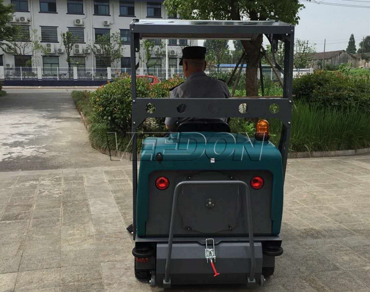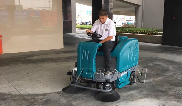 驾驶式扫地机是一款现代化、设计紧凑、操作灵活的机器。配备了独立马达控制的双边刷和主滚刷及带自动震尘方式的吸尘过滤系统。牵引电机强劲有力。三轮式底盘设计,转弯半径小,即使在窄小的范围内也操作自如。