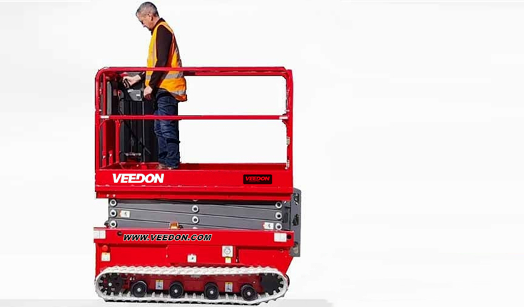 履带式剪叉高空作业车采用橡胶履带底盘,防坦克架构设计,让高空作业车在松软的地面也可作业,打破了高空作业车必须在硬地面施工的局限性。履带式剪叉高空作业车配置的无痕履带,不会对地面造成损伤或0度转弯时留下痕迹。橡胶履带行走系统,噪声低,振动小,特别适合于高速转移多的场合,实现了全路面通过性能。