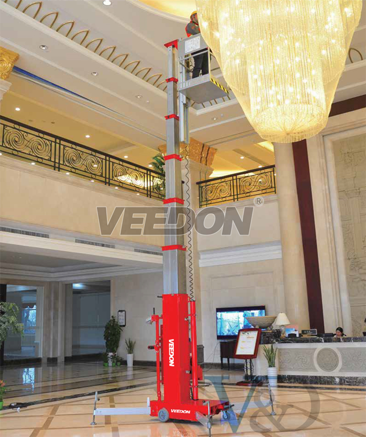 Veedon套筒式高空作业升降平台,最高工作高度可达到14米。其独特的套筒设计,在最大程度上提高了升降臂的稳定性。全内置提升机构,维护成本低,外型美观。高强度航空铝合金套筒设计,让用户既体验到其套筒型的稳定,又可以更轻松地运输。