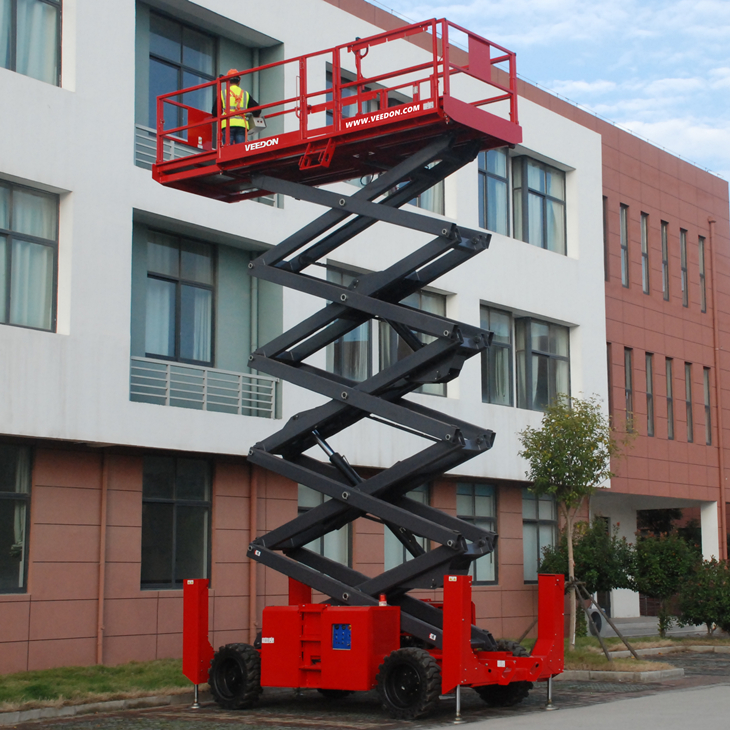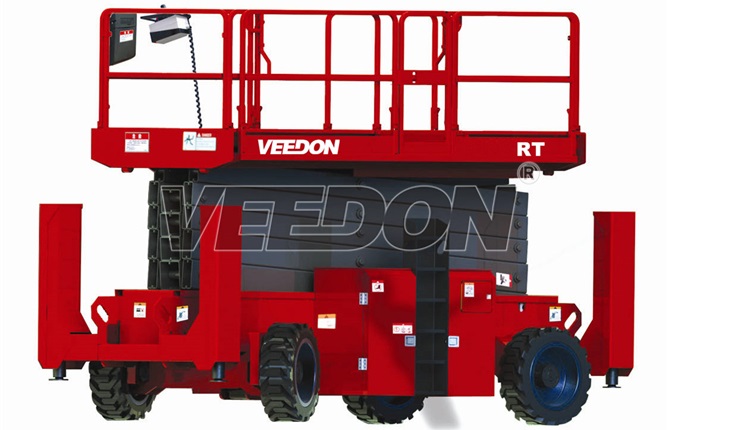 RT系列自走式崎岖地形剪刀式升降机是一种空中作业平台,最大能力为1000公斤,剪刀式升降机的特点配有应急装置,可以在没有电力的情况下降至地面。这种自走式崎岖地形剪刀式升降机还可以通过紧急牵引来移动,以确保操作人员的安全。