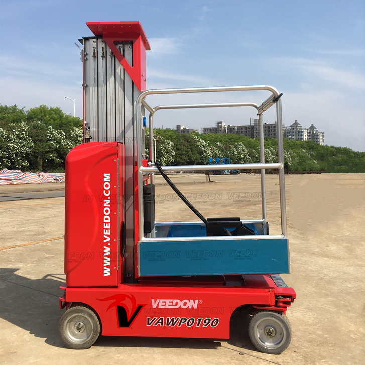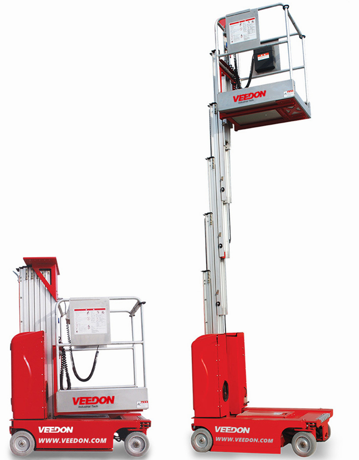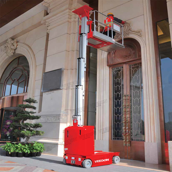 Veedon威登 自行走单桅杆高空作业平台具有机身尺寸小而紧凑,移动方便等特点,其他升降机升降平台及自行走功能,最大程度地提高了工作效率,广泛应用于商城,超市,仓储及工业等领域。独特的零半径内转设计,在狭窄空间灵活应用。具有30%的爬坡能力,弹簧及液压释放制动系统以及25厘米厚质无痕耐磨橡胶轮胎,让驾驶操作高空作业更加轻松。威登Veedon 为用户提供高品质,低成本的专业高空作业设备。