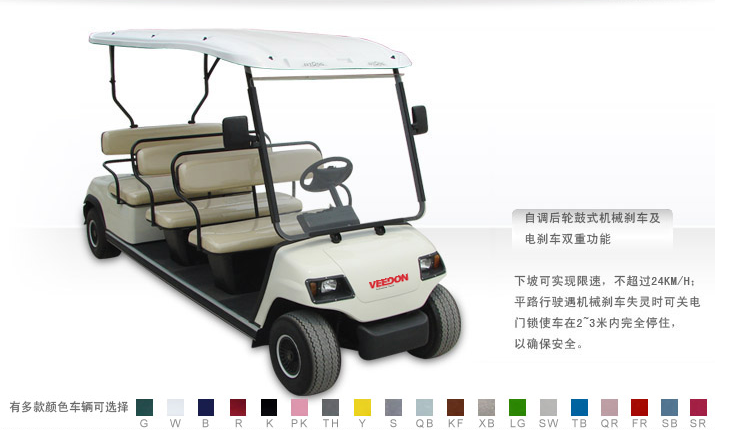 威登GC-6电动高尔夫球车性能稳定、操控轻便是威登GC-6电动高尔夫球车的最大特点。威登GC-6电动高尔夫球车在全球范围内拥有大量的客户。从高尔夫球场、别墅、酒店、学校到私人用户,威登GC-6电动高尔夫球车都将是您最便捷的短途交通工具。