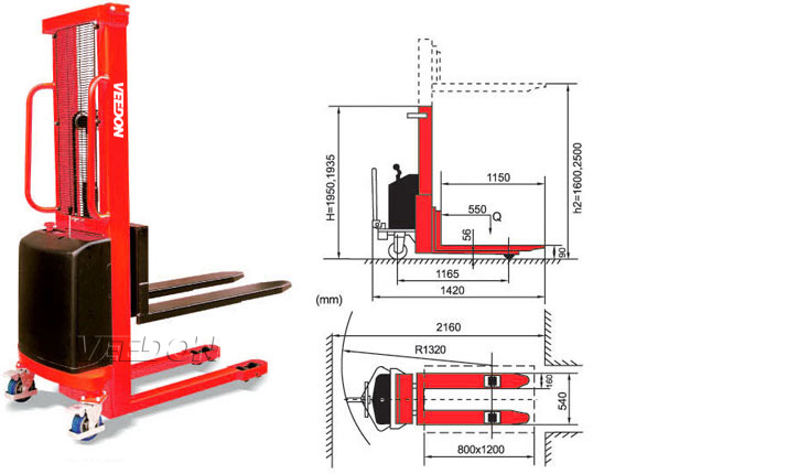 经济型半电动堆高车DL采用进口液压泵站,提升货物平稳有力