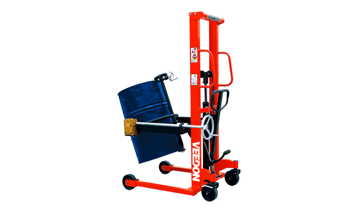 适合钢制油桶和200L双层闭口塑料桶的搬运、堆高、 90度手摇翻转倒料于一体;